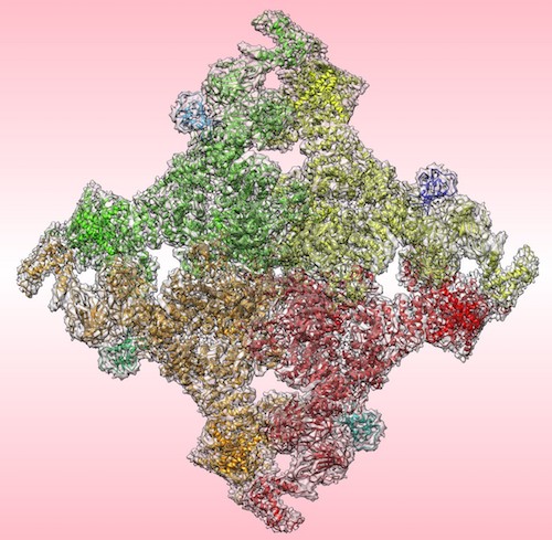 Shown here are structures of ryanodine receptor from the Frank lab (PDB ID 5T15, EMDB ID EMD-8342) and beta-galactosidase from the Henderson lab (PDB ID 4CKD, EMDB ID EMD-2548) :